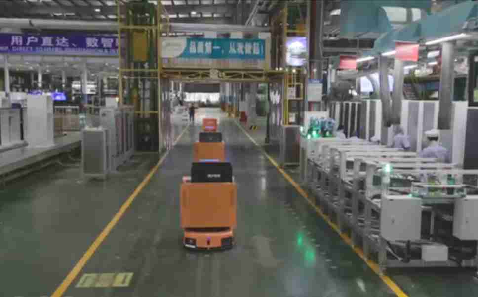 为车载冰箱物流配送打造的智能解决方案,,,,包含产中物流通过潜伏举升AMR搬运至线边,,,,产后成品物流智能仓储,,,,流程包含产中物流智能齐套入库,,线边安灯叫料AMR智能配送至线边,,,成品入库、、、出库,,,,通过无人堆高车机器人,,,智能仓储管理替代人工作业管理,,,,实现更高存储、、更高效率、、、、更具柔性化的解决方案。。。。
